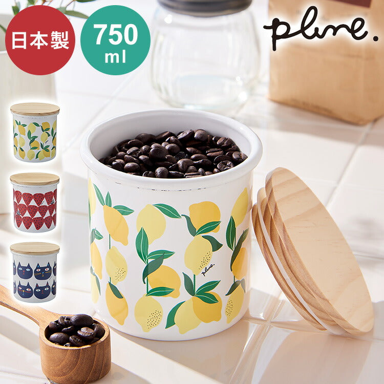 プルーン ホーローキャニスター レモン 猫 キュート プチホーロー食器 ミミ ココ モモ 丸い チャーミング 日本製(代引不可)