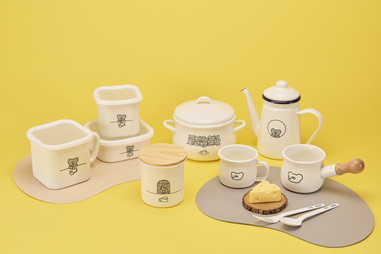 松本セイジが描くアート作品のキャラクターとして誕生しました。食いしん坊のANDYは、いつもチーズのことで頭がいっぱいです。好きなことは、チーズに挟まること。そんなねずみのANDYがシンプルで使いやすいホーロー製品になって登場!16cmと小ぶりな鍋は1~2人で使えるサイズ。ぽってりとした可愛い形のホーロー製のキャセ