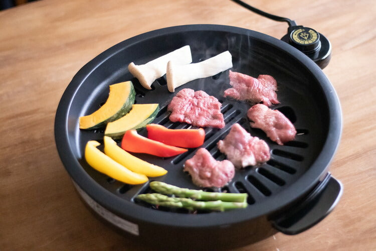 ■商品説明余分な油を落としてくれるので、食材をおいしくヘルシーに焼き上げます。水受皿に脂が落ちて冷やされるため、煙も出にくい構造になっています。プレートはフッ素樹脂加工なので、焦げ付きにくくお手入れ簡単!■商品仕様