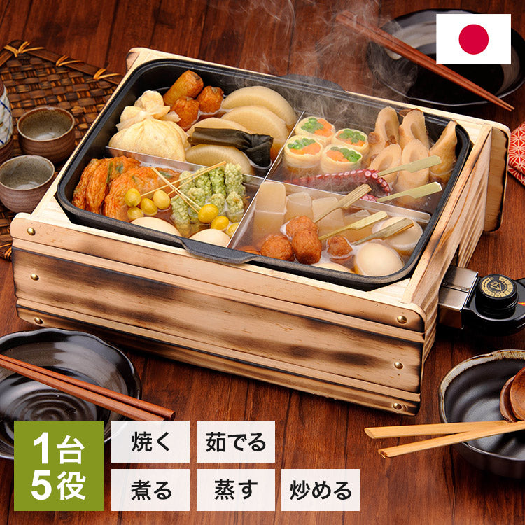 ■商品説明おでんだけではなく、煮る、茹でる、蒸す、焼く、炒める、の1台5役!アイデア次第でさまざまな料理に使える便利な多用途鍋です。■商品仕様