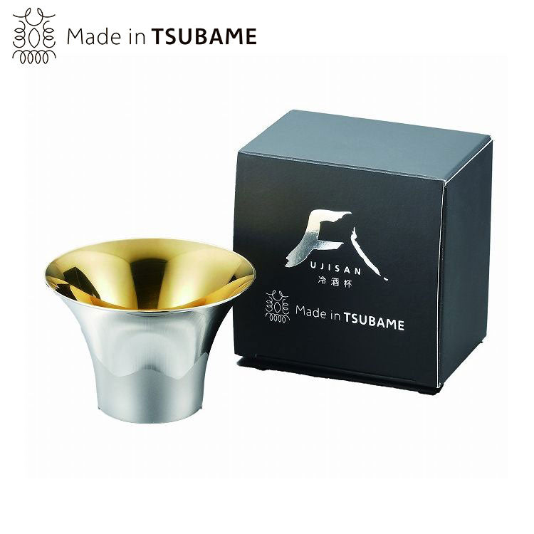 雄大で美しい富士山をモチーフにしたステンレス冷酒杯。外面は鏡面仕上げで、山頂の雪をブラスト加工で表現しました。
