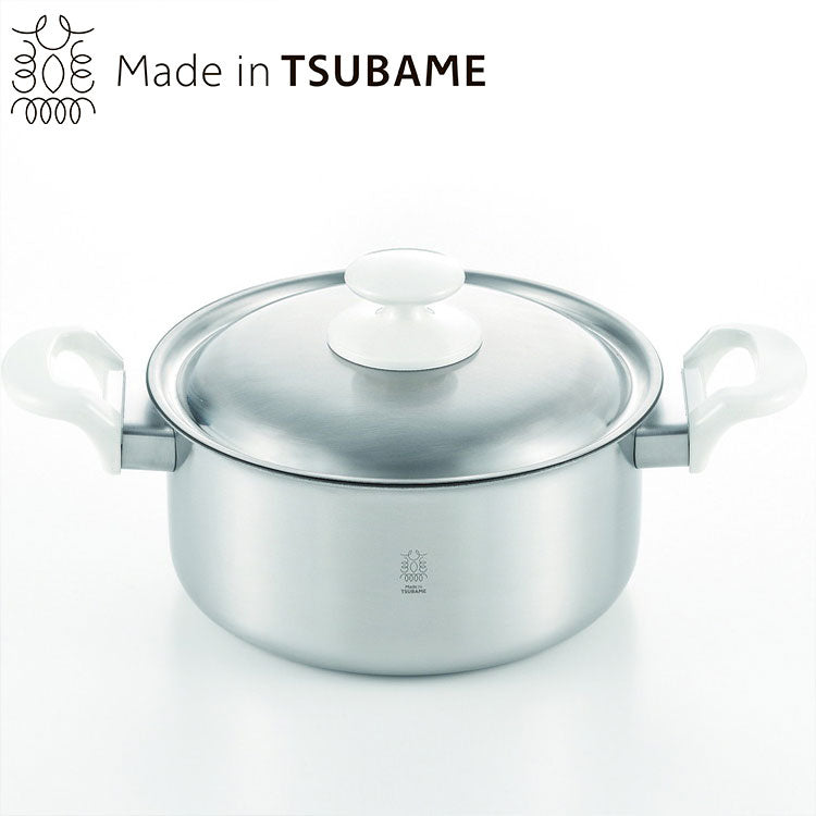 厚手の本体は、一度温まると冷めにくいため煮る・焼くといった調理に適した素材です。熱伝導に優れたアルミニウムを内側に、サビに強い耐食性に優れたステンレス綱を外側にした二層鋼のお鍋です。熱がムラなく伝わり蓄熱効果も高くなっています。さらに内面フッ素樹脂加工で焦げ付きにくい、お手入れ簡単な鍋となっています。ガス火・IH電磁調理器100V・200V対応。MadeinTSUBAME認証商品。