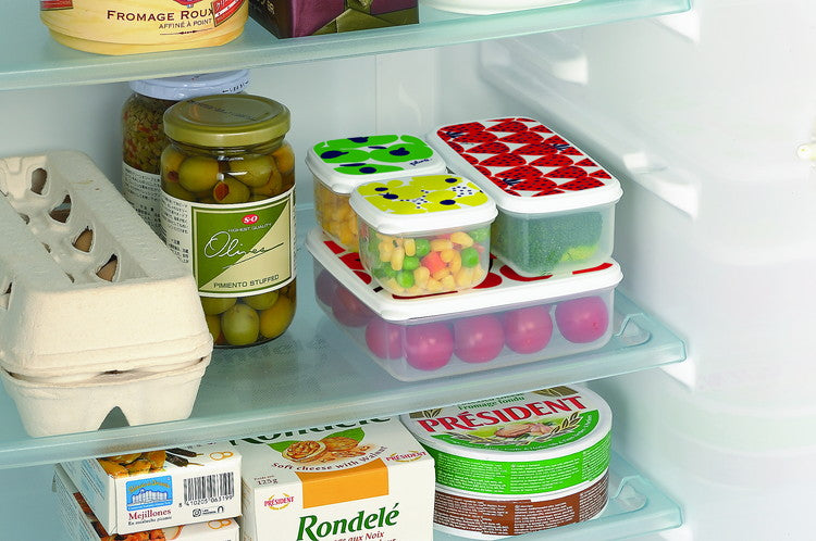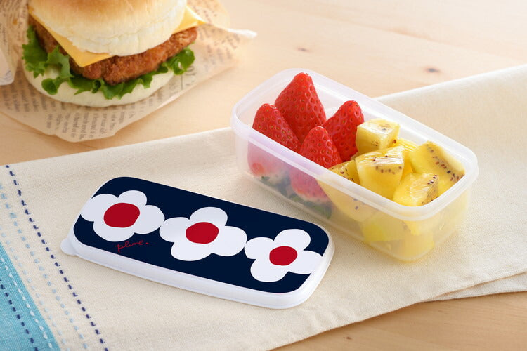 フルーツ&フラワー模様で女性に好まれます。蓋付だから冷蔵庫内でも積み重ねて保存しやすい容器です。冷蔵庫内でも収納時でも場所を取らずにスッキリ!蓋を外せば本体は電子レンジにかけられます。本体は半透明なので保存した内容が分かりやすく管理しやすい!