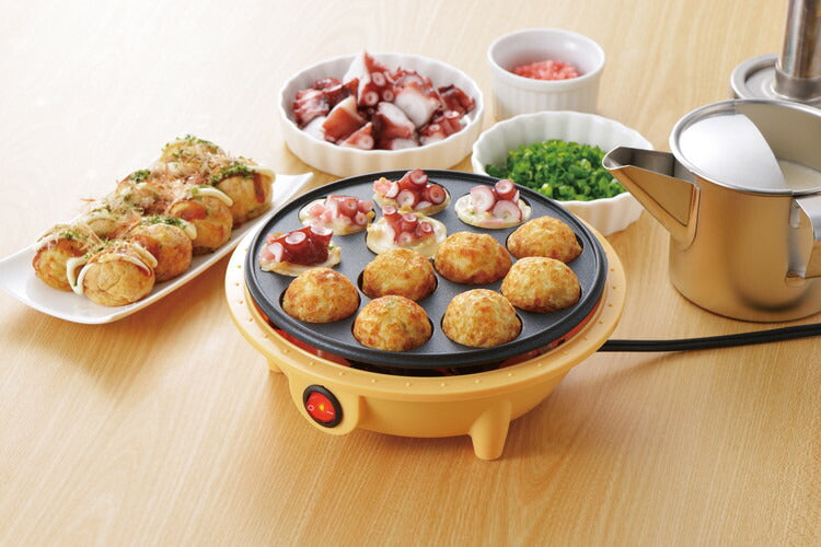 ■商品説明アツアツ出来たてのたこ焼きがご家庭で楽しめます。ご家族やお友達同士でワイワイパーティー気分!プレートはフッ素樹脂加工が施してあるのでたこ焼きをくるくると返しやすい!一度に12個焼けます。■商品仕様