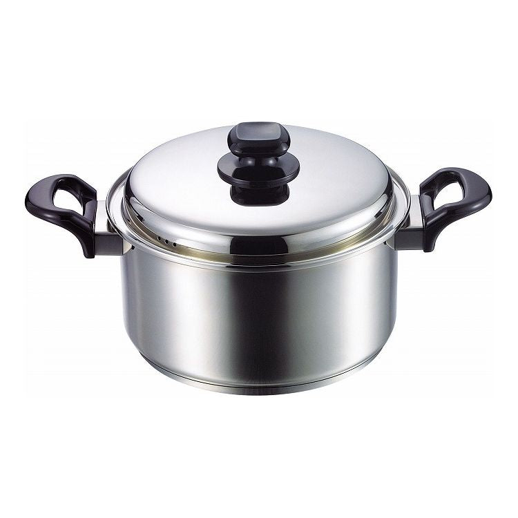 内面ミラー仕上げで料理がこびりつきにくく、お手入れ簡単なステンレス鍋です。18-8ステンレス鋼のボディはサビに強く衛生的。ガス火・IH電磁調理器100V・200V対応。