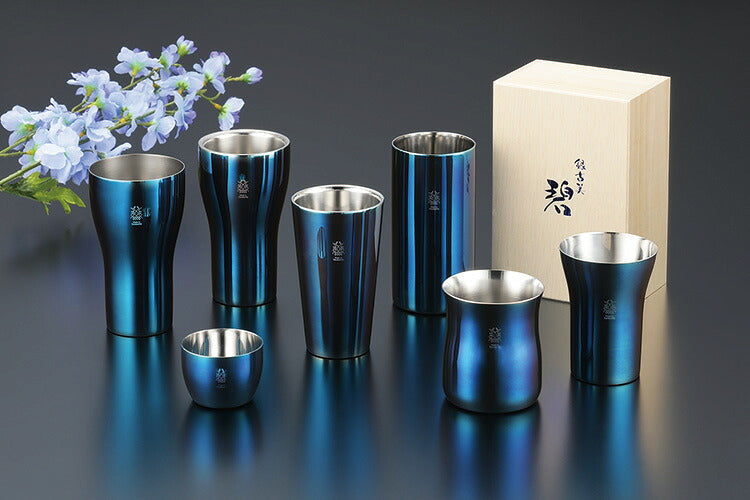 優美に輝く碧がテーブルに高級感を演出。奥深い色合いの器は、見た目からも爽快感を得られます。使い込むうちに独特の風合い・味わいが出てくるのも魅力の一つ。手のひらに収まるほどの小さなサイズ。日本酒をちびちび飲みたい方にもピッタリ。一重の造りのため冷たいお酒を注ぐと外側に細かい水滴がつき、風貌からも冷たさを感じることができます。