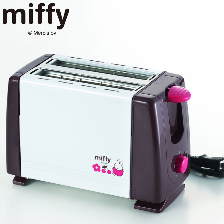ミッフィーとフルーツやお花を配したキッチン家電。レトロ感とビビッドな明るさを併せ持つピンク×オトナカラーのブラウンで引き締めた華やかさのあるシリーズです。コンパクトな大きさのポップアップトースター。食パンは6枚切・8枚切に対応します。ダイヤルで焼く時間を調整できますのでお好みの焼き加減にできます。焼き上がるとポンと飛び出すポップアップ式。