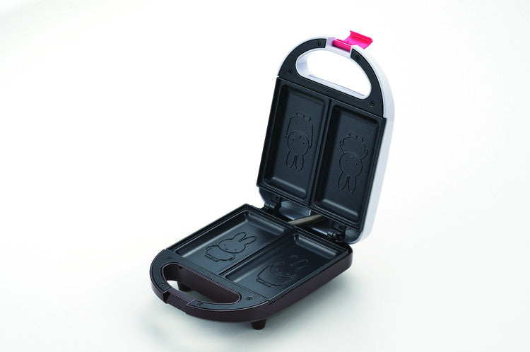 ミッフィーとフルーツやお花を配したキッチン家電。レトロ感とビビッドな明るさを併せ持つピンク×オトナカラーのブラウンで引き締めた華やかさのあるシリーズです。食パンの耳を切らずにそのまま調理ができます!プレート面にはミッフィーの焼き型がつくので可愛いホットサンドになります!