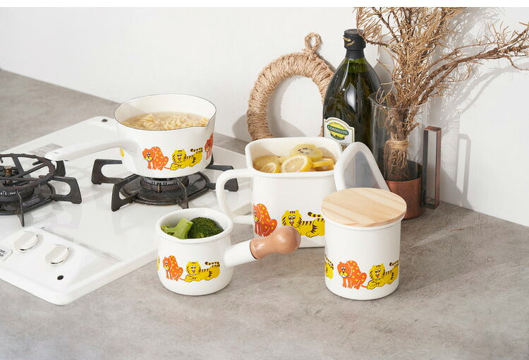 新潟県燕市でひとつひとつ絵柄を丁寧に手で貼り、仕上げているホーローです。ホーローは耐酸性に優れており、酸・塩分に強く、においや汚れもつきにくい性質があります。また色が移らず、雑菌が繁殖しにくいので衛生的です。かわいらしいデザインで、贈り物にも喜ばれます。