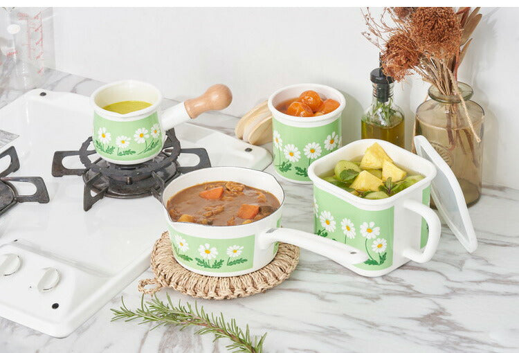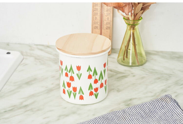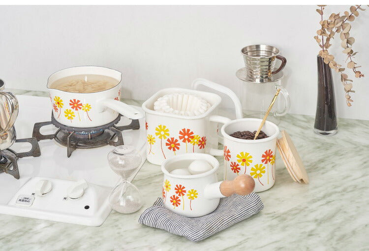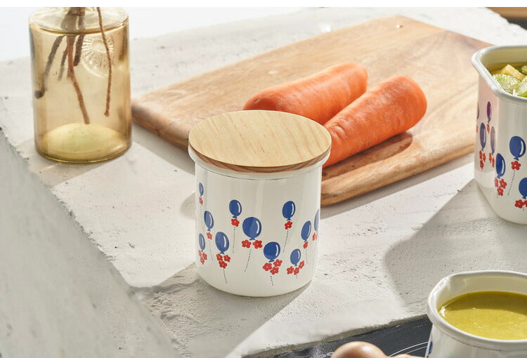 材質/本体:ほうろう用鋼板(ほうろう加工)、底の厚さ0. 6mm、木部:天然木、サイズ(重量・容量)/約φ108×113mm(約326g・750ml)、日本製(本商品は下地は中国国内で、絵付けから仕上げまでの完成工程を日本国内)
