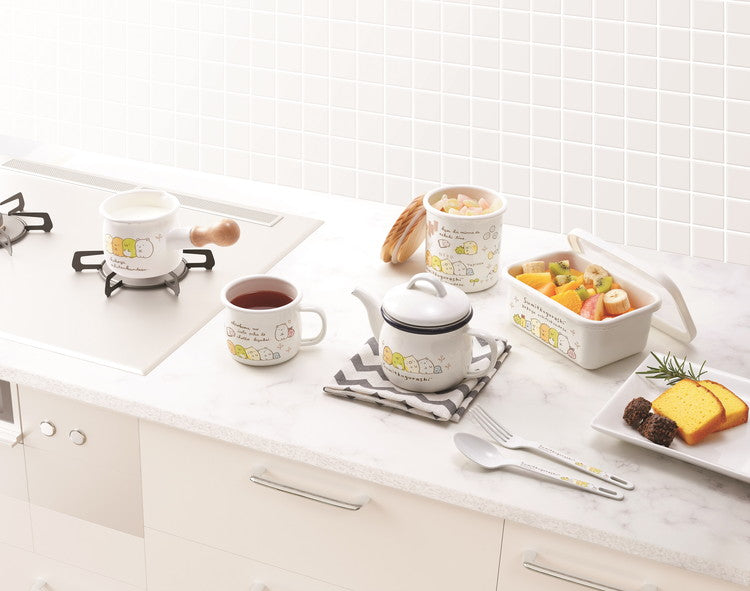 のんびり過ごしている姿を柔らかいタッチで描きました。カジュアルでかしこまらない、そして毎日使えるすみっコらしい 大人のためのデザインシリーズです。ほうろうは酸に強くてにおい移りの心配が少ないので、常備食の保存にも最適です。角型タイプなので積み重ねたり、横に並べたときもムダなすき間ができにくく収納スペースを有効に使えます。
