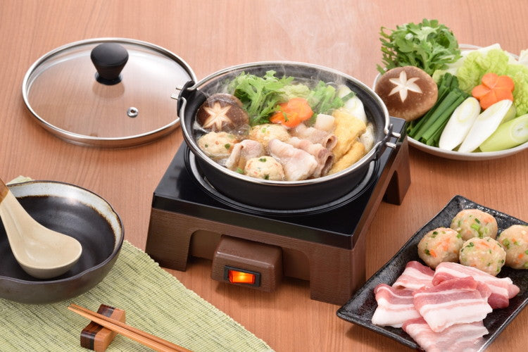 ■商品説明和膳をモチーフにした和風のデザイン!食べ切りサイズのコンパクトサイズ。鍋は着脱式で丸洗いOK!鍋の内面はお手入れの楽なふっ素樹脂加工。スイッチ一つの簡単操作(細かい温度調節はできません)。「すき焼き」「湯豆腐」が作れるカンタンレシピ付!■商品仕様