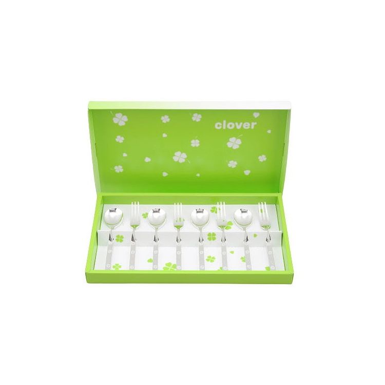 ■商品説明持ち手にクローバーの刻印がデザインされたカトラリー。ステンレス製で丈夫です。銀メッキの仕上げが施されており、美しい光沢があります。印刷と違い、柄が消えてなくなることがありません。■商品仕様