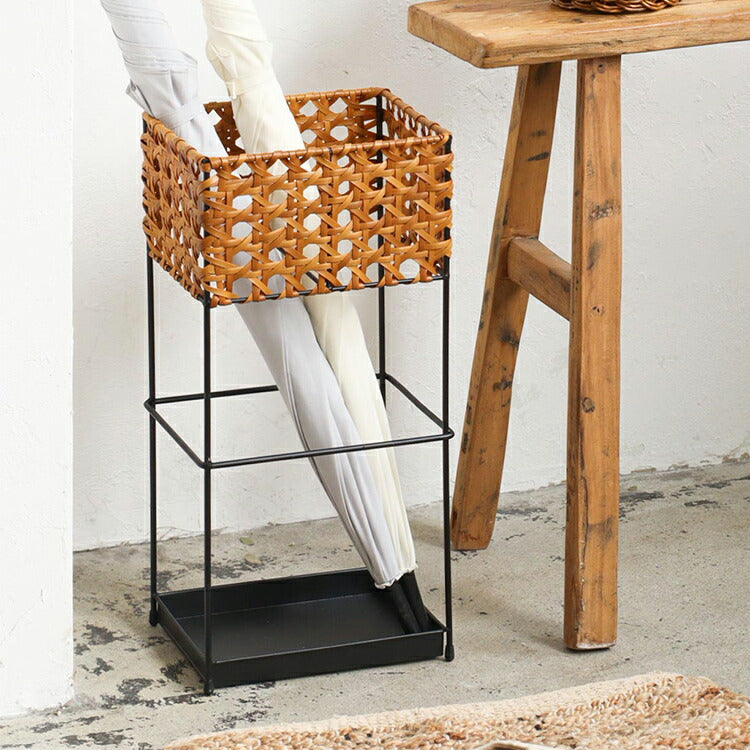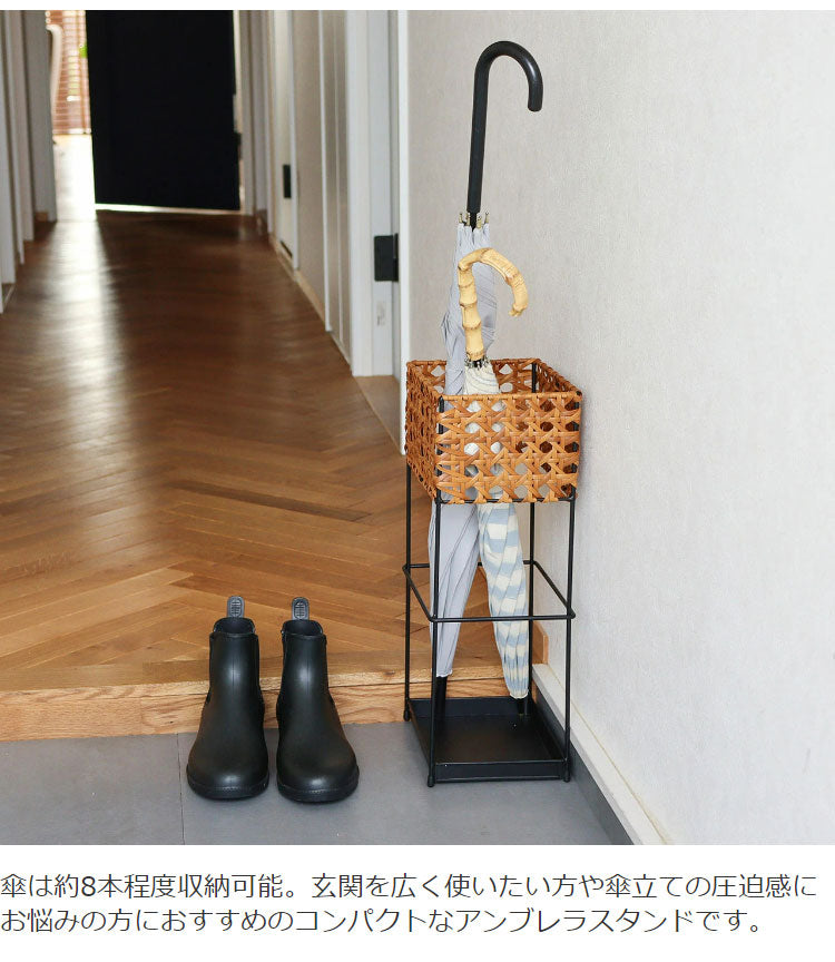 ラタン調 傘立て PPラタン×アイアン アンブレラスタンド レクト 傘 8本収納 UTILE Octa ユティル オクタ 手編み かさたて 玄関収納 コンパクト ブラック 黒 スリム おしゃれ