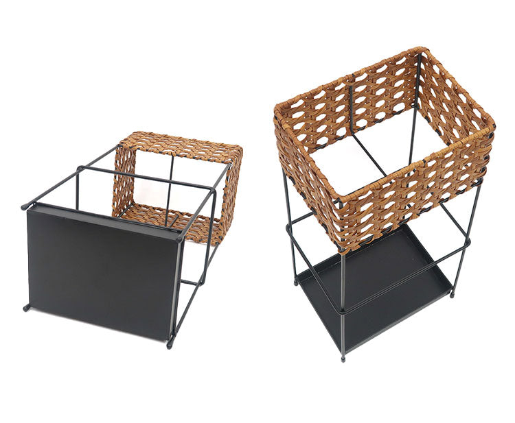 PPラタンとアイアンを組み合わせたシンプルなアンブレラスタンド。 UTILE Octaシリーズにアイアンの脚と組み合わせたアンブレラスタンドが加わりました。 「レクト」は幅約21cm、奥行約15cmのコンパクトながら収納力も兼ね備えたサイズです。 中央にアイアンの仕切りがあるため傘の種類や家族ごとに傘を分けて収納可能。 編み込み部分は水に強いポリプロピレン、ポリエチレンチューブを使って手作業で編まれています。 天然素材のように腐食しないので濡れた傘も気にせず入れられます。 傘は約8本程度収納可能。玄関を広く使いたい方や傘立ての圧迫感にお悩みの方におすすめの コンパクトなアンブレラスタンドです。