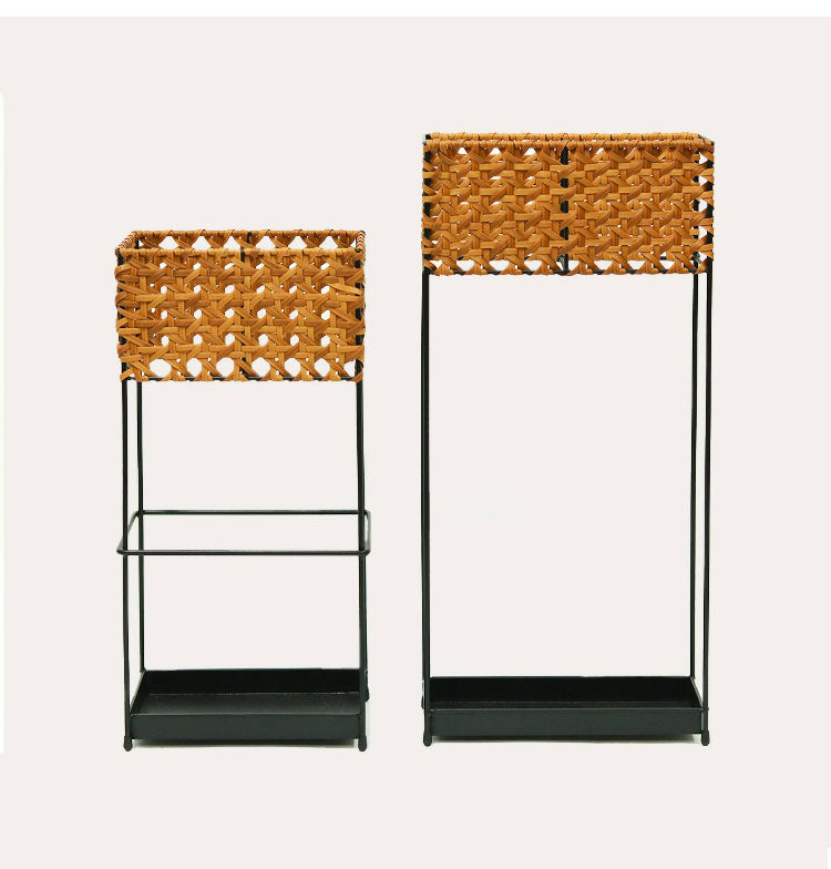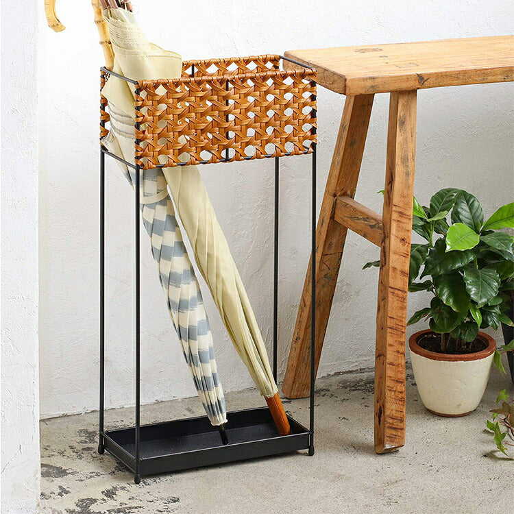 ラタン調 傘立て PPラタン×アイアン アンブレラスタンド スリム 傘 6本収納 UTILE Octa ユティル オクタ 手編み かさたて 玄関収納 コンパクト ブラック 黒 スリム おしゃれ