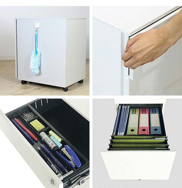・引き出しは鍵を閉めると全段ロックされるオールロック式。施錠が楽で鍵の閉め忘れも防止できます。