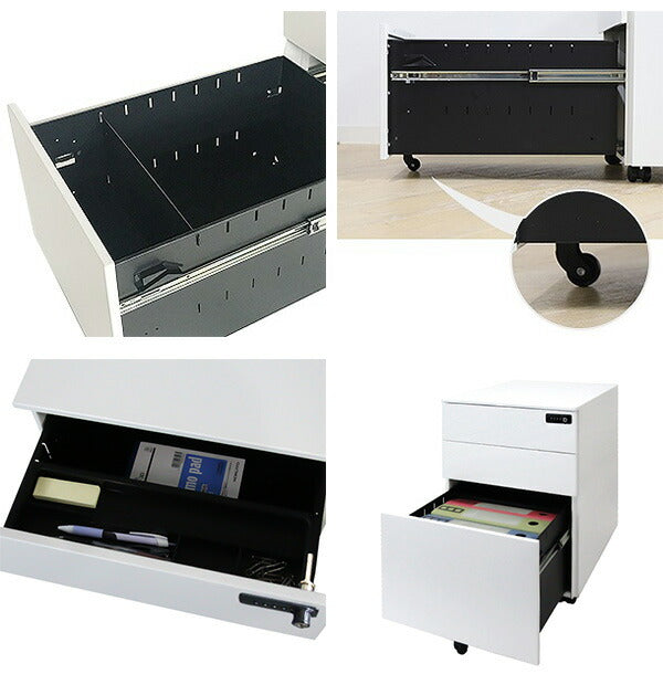 完成品 スチールワゴン ダイヤル錠 引き出しフルオープン スチール製 キャスター付き 脇机 サイドデスク 収納 収納 引き出し オフィスワゴン デスクワゴン キャビネット チェスト 収納(代引不可)