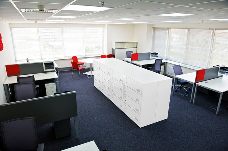 ファシルのシステム収納庫はボルトレス設計となっていおり、組立も簡単。