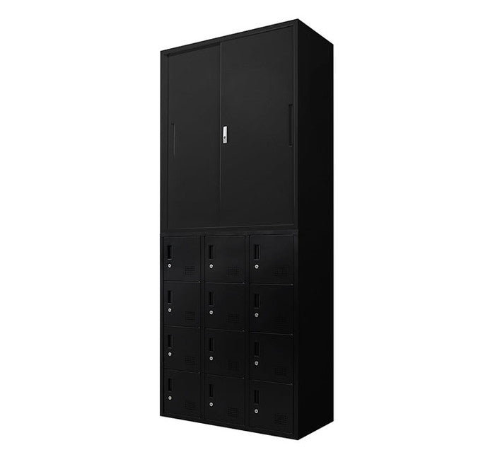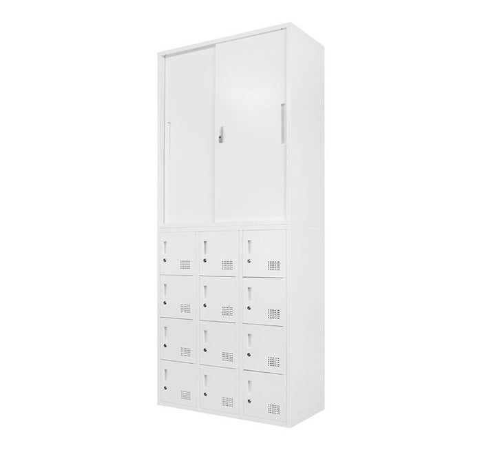 引き戸書庫 ロッカー 12人用 2台セット 同色セット それぞれ1台ずつ 組み立て品 鍵付きラック システム収納庫 スチール書庫 キャビネット かぎ付き 更衣ロッカー スチールロッカー(代引不可)