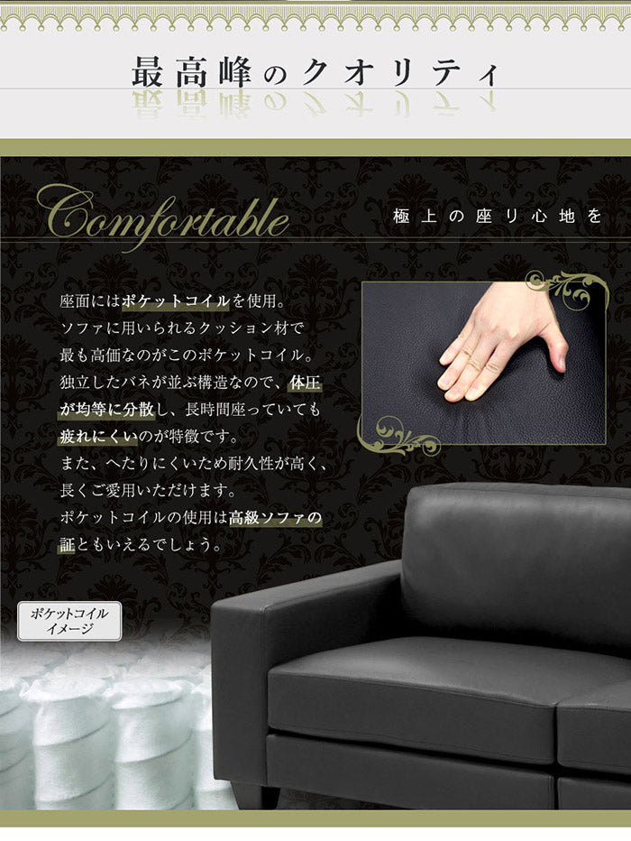 座面にはポケットコイルを使用。体圧が均等に分散し、長時間座っていても疲れにくいのが特徴です。