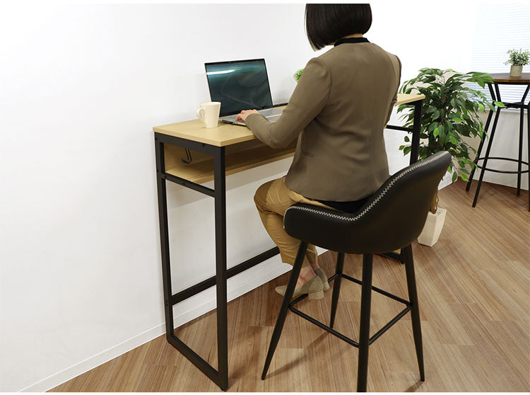 高さ105cmの天板は、スタンディングデスクとしてはもちろん、ハイスツールと併用してカウンターにもおすすめ。立っても座っても、いいとこ取りで便利に使えます。