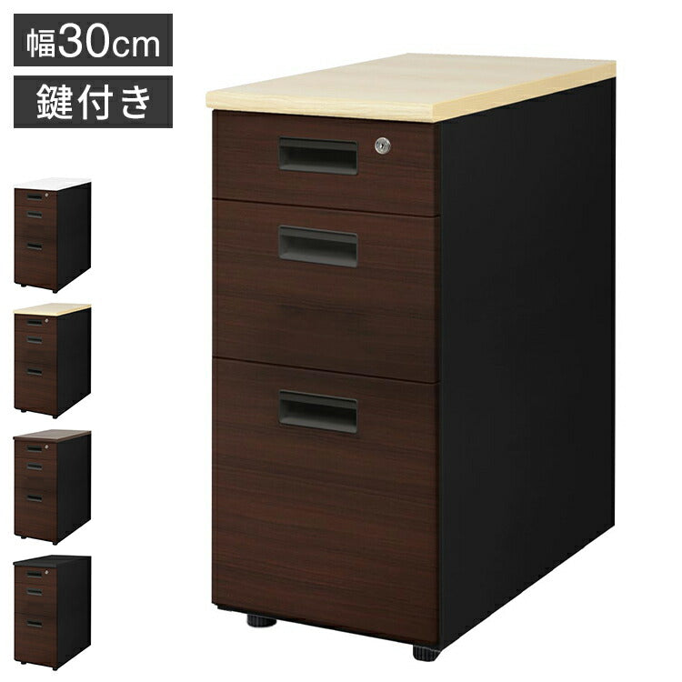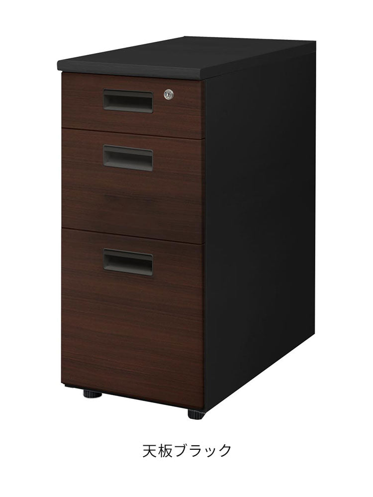 脇机 3段 本体ブラック 木目 スリム 幅300×奥行600mm 袖机 サイドワゴン デスクワゴン サイドキャビネット サイドデスク 鍵付き LD-WD3SB-C ワゴン デスクワゴン 書類収納(代引不可)