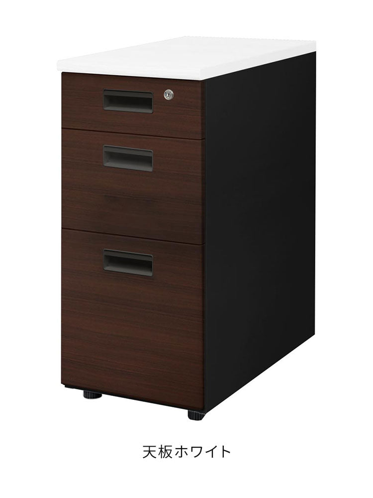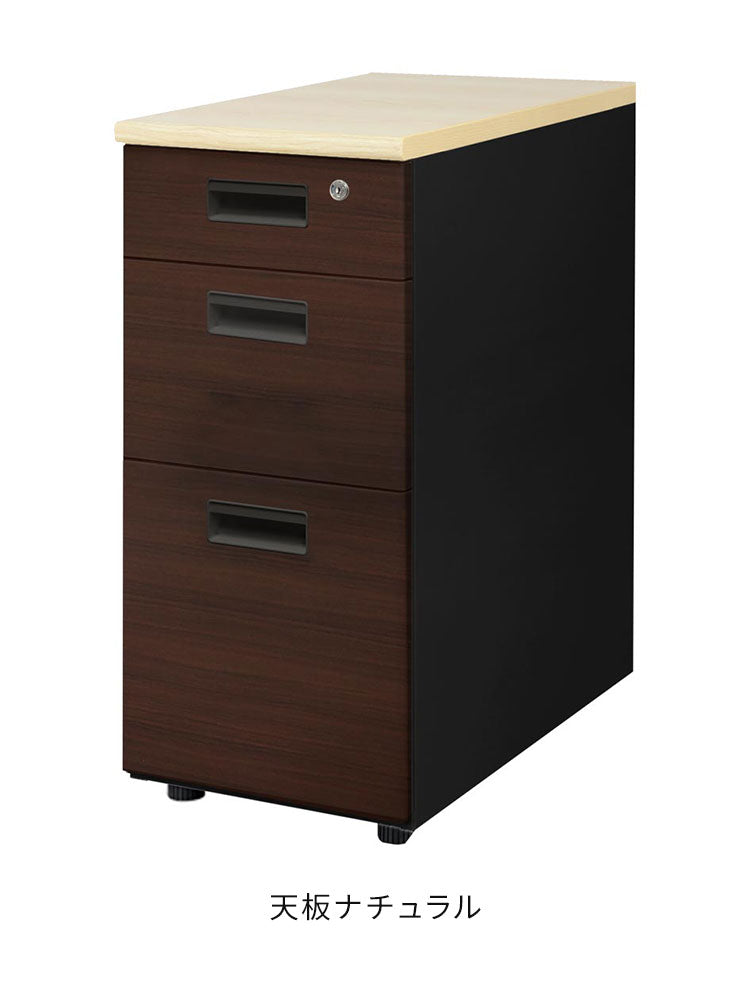 商品名 NUTS(ナッツ)デスク ブラック×木目 脇机 スリム 3段