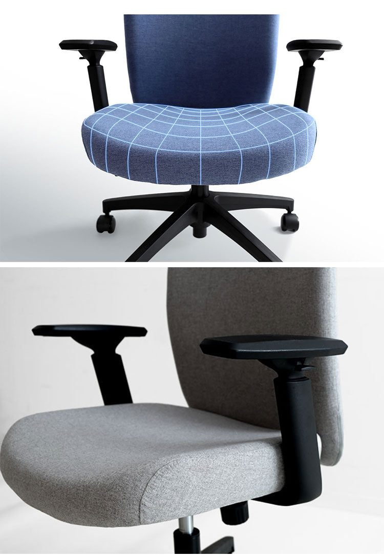 モールドウレタンの座面が体にフィットし、長時間座っても疲れにくく快適に。