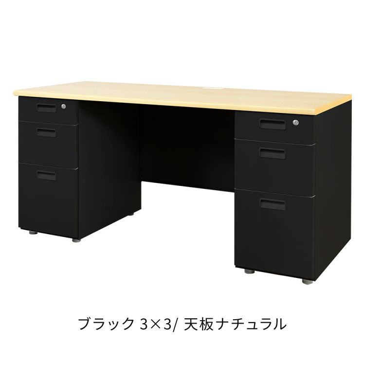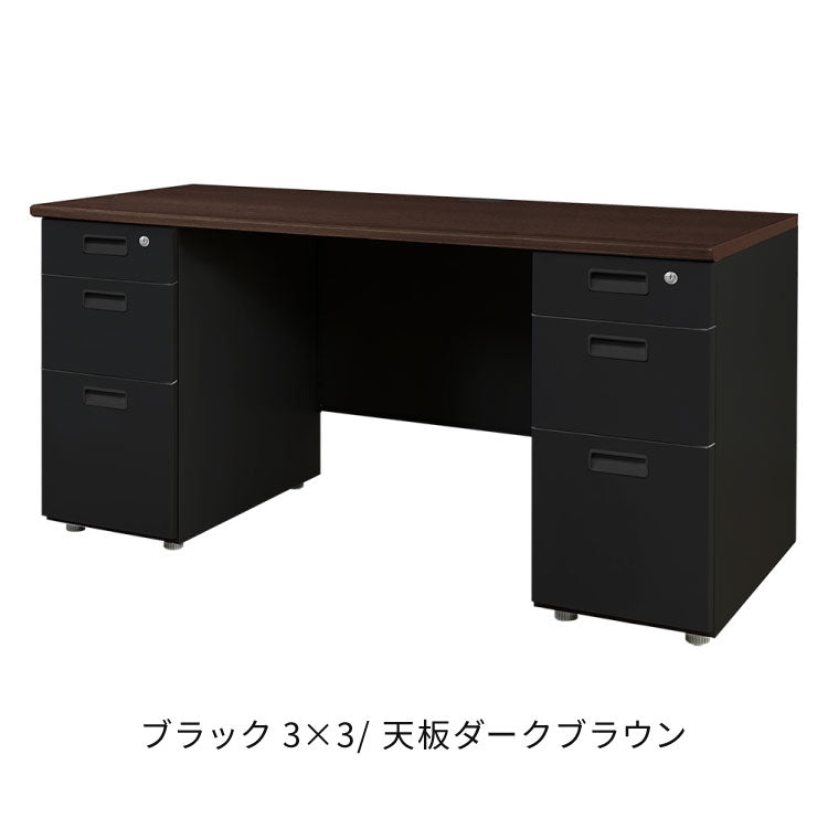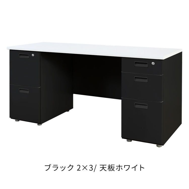 オフィスデスク 両袖机 本体ブラック 袖箱 無地 スリム 幅1400×奥行600mm ワークデスク パソコンデスク 事務机 作業机 机 シンプル LRD-146B オフィスワーク デスク(代引不可)