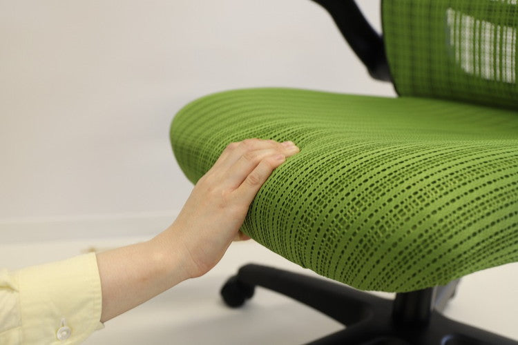 座面の素材はメッシュとクッションのハイブリッドを採用。通気性に加え、座り心地の良さにもこだわりました。
