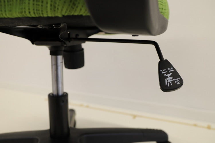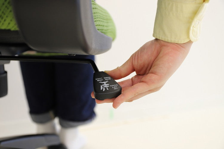 デスクの下にチェアを収納できるアームアップの肘置き、休憩中にも大活躍のロッキング機能、レバーを引くだけの座面昇降機能など、快適さと実用性を両立した様々な機能を搭載。