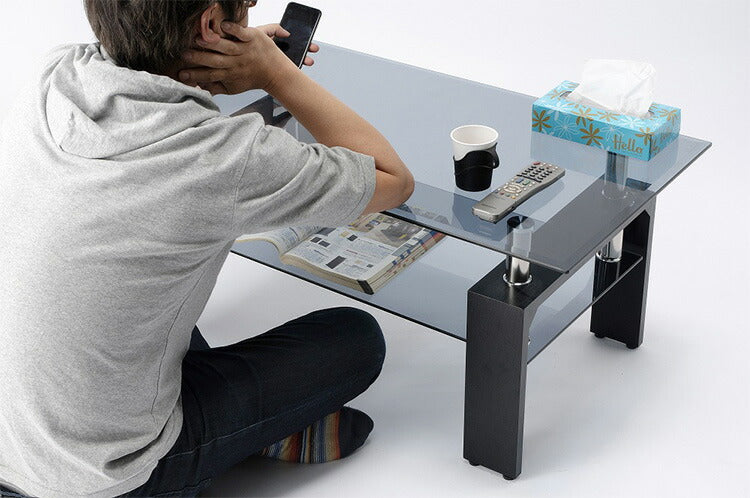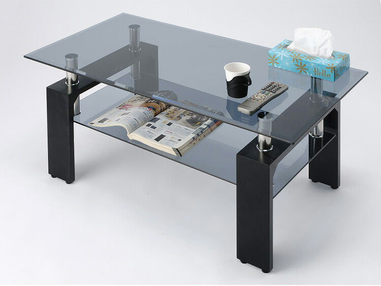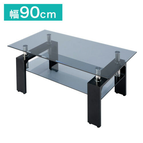 ガラスセンターテーブル クリアブラック センターテーブル 幅90×奥行き50cm ガラステーブル リビングテーブル 角型 ローテーブル(代引不可)