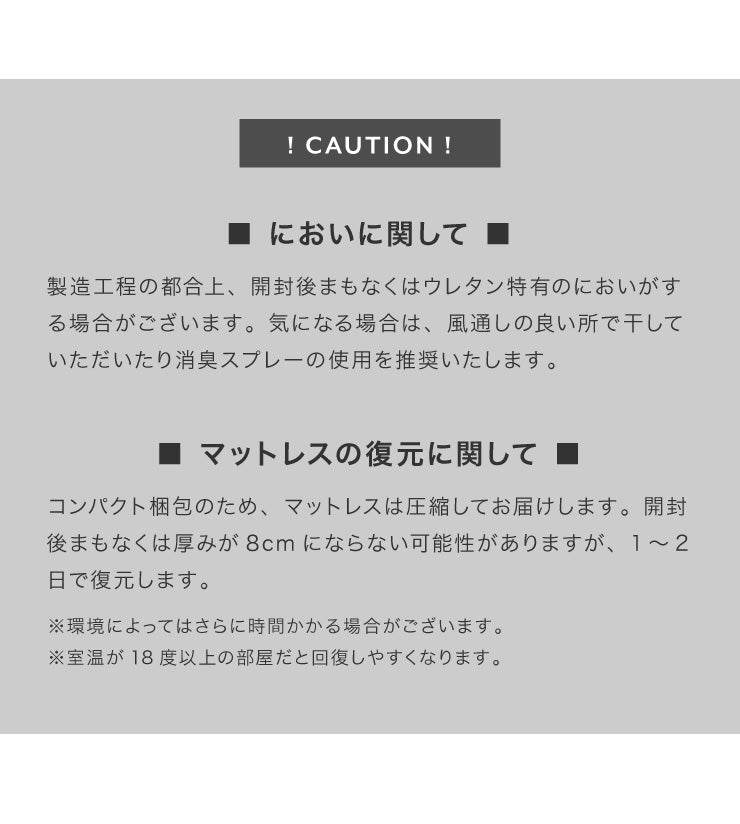 ※復元率の問題でマットレスのサイズに 若干の誤差が生じる場合がございます。
