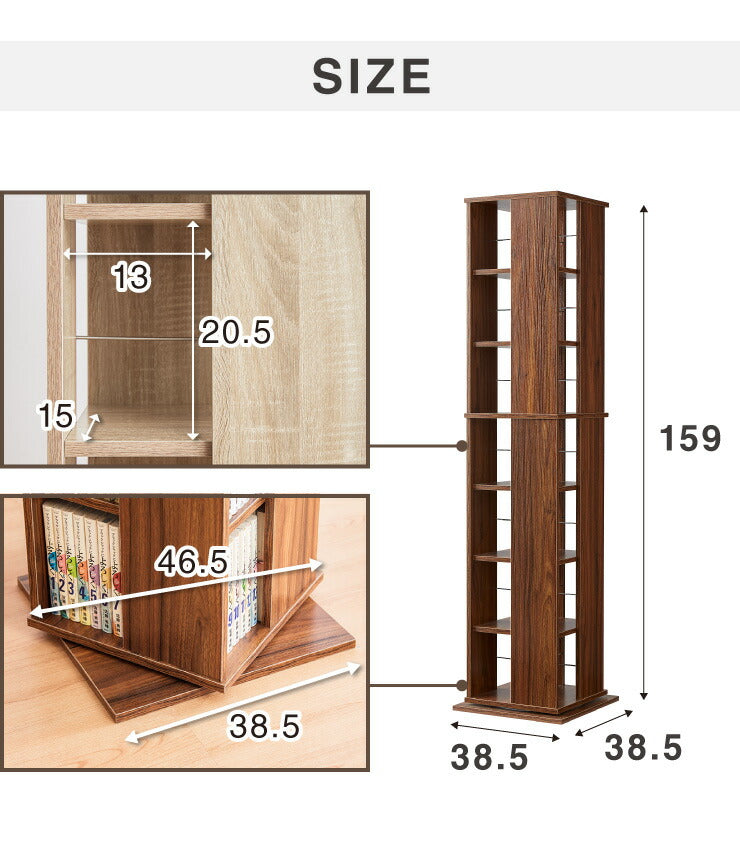 回転本棚部分サイズ:幅33cm×奥行き33cm×高さ157cm