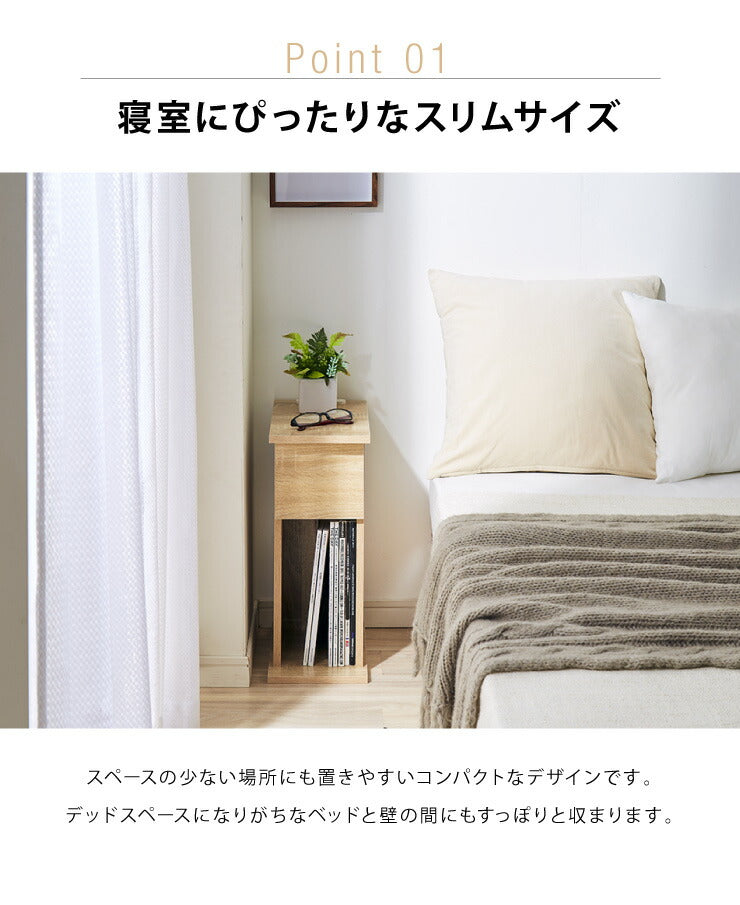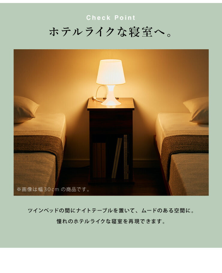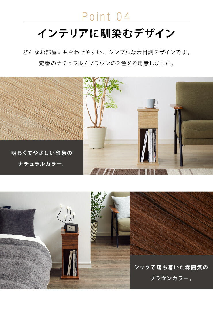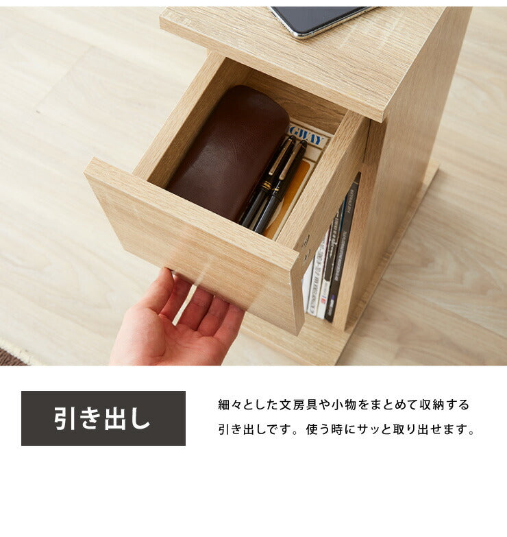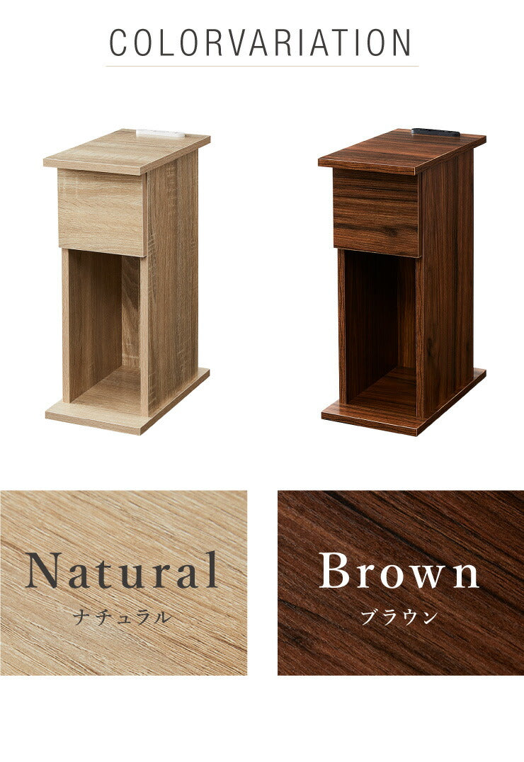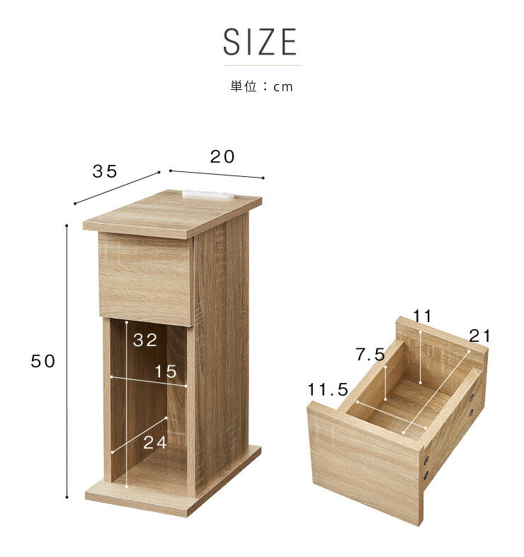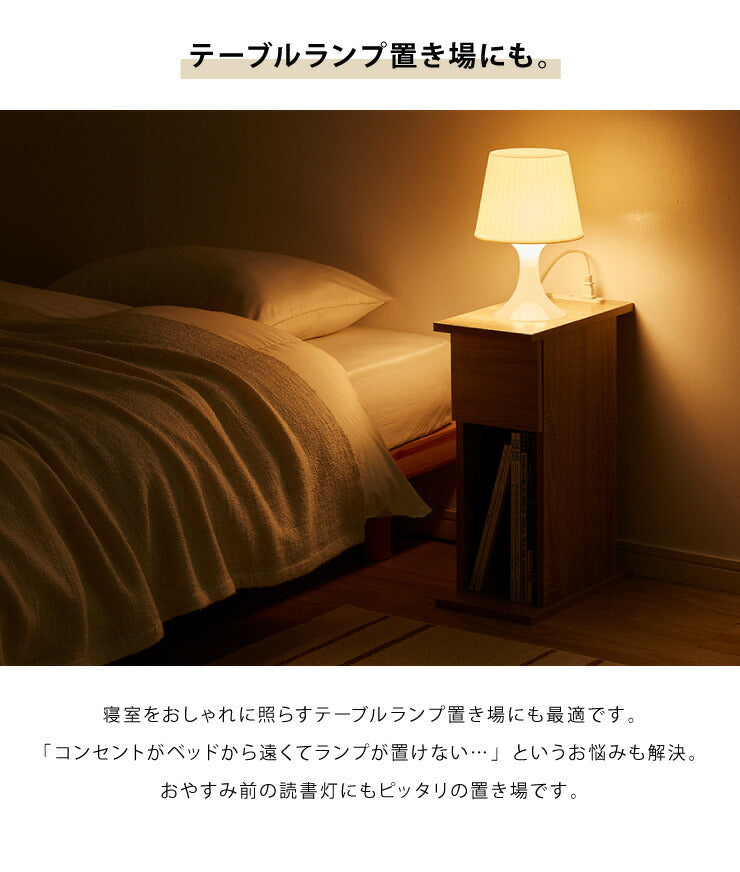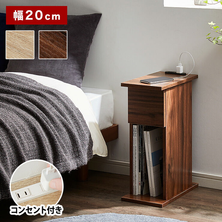 引き出し付きコンセント付きナイトテーブル 幅20cm