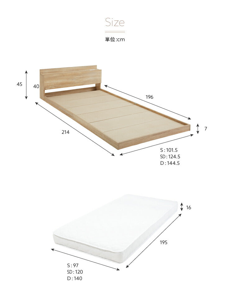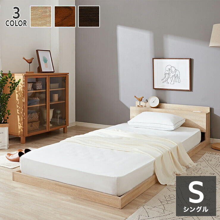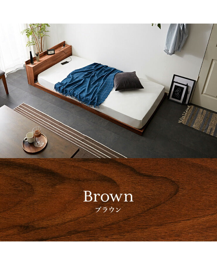 棚・コンセント付き フロアベッド シングル ポケットコイルマットレス付き ローベッド 宮付き ベット 棚付き 北欧 木製(代引不可)