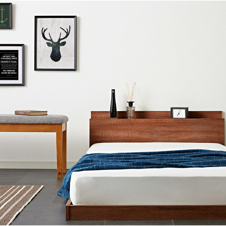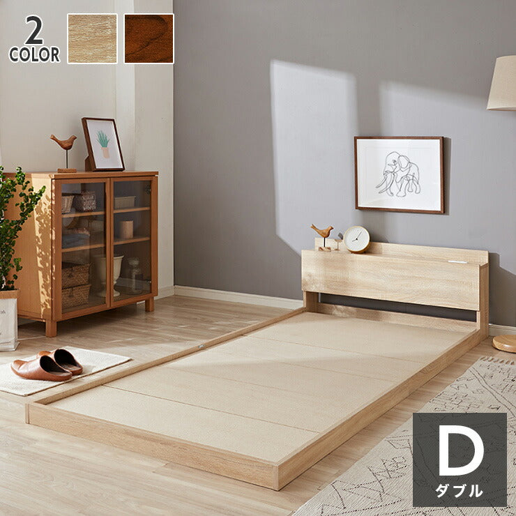 棚・コンセント付き フロアベッド ダブル フレームのみ 宮付き 棚付き コンセント2口 北欧 シンプル 新生活 一人暮らし ベッド ベッドフレーム ローベッド 宮棚 引き出し FLBD-TC-001D (代引不可)