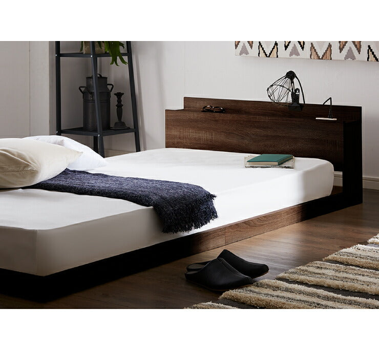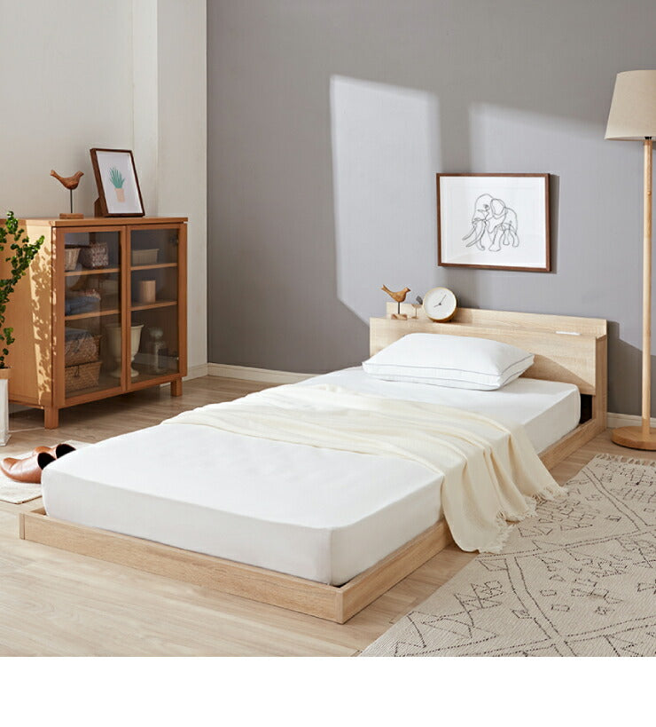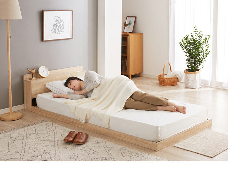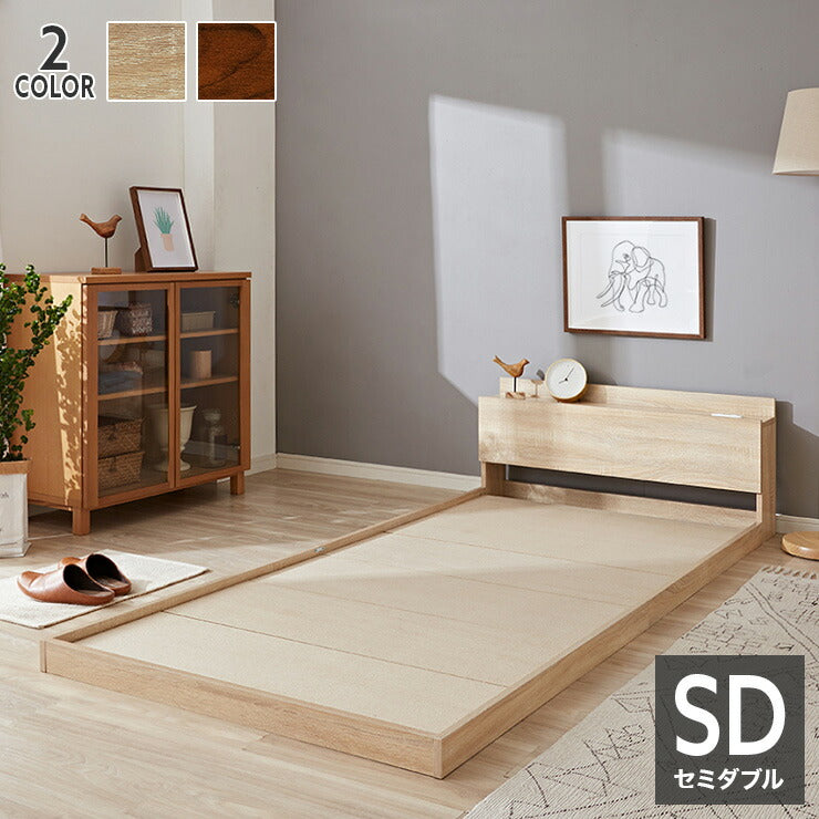 棚・コンセント付き フロアベッド セミダブル フレームのみ 宮付き 棚付き コンセント2口 北欧 シンプル 新生活 一人暮らし ベッド ベッドフレーム ローベッド 宮棚 引き出し FLBD-TC-001SD (代引不可)