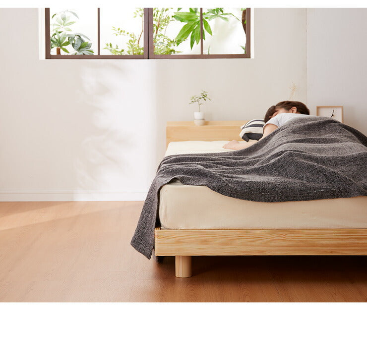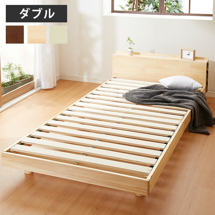 宮付きすのこベッド コンセント付き ダブル 天然木 高さ調整 棚付き 宮付き フレームのみ 北欧 シンプル 新生活 一人暮らし ベッド ベッドフレーム ローベッド フロアベッド 収納 すのこ 寝具 木製 頑丈
