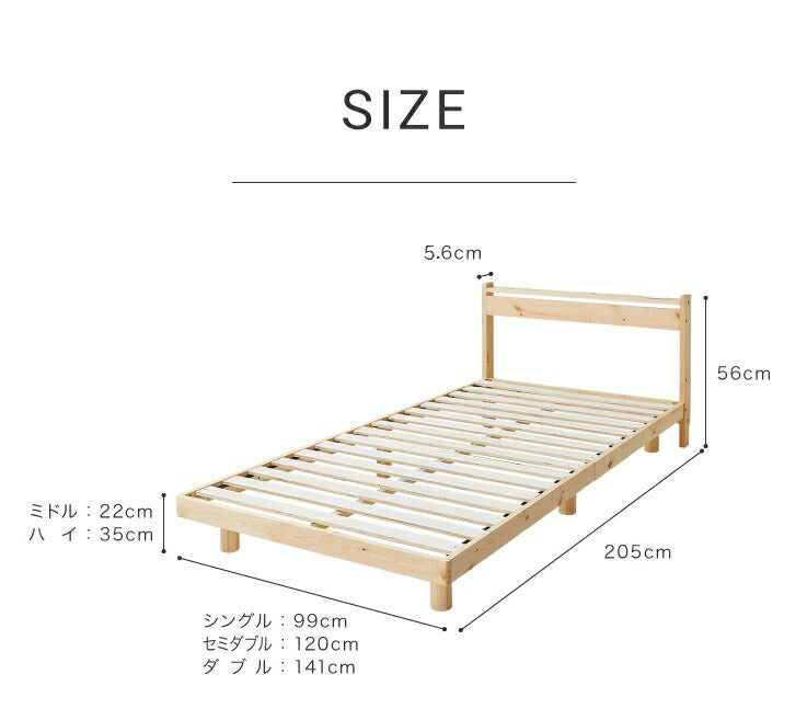 ・ベッドフレームと宮棚には自然の温もりを感じられるパイン無垢材を使用しています