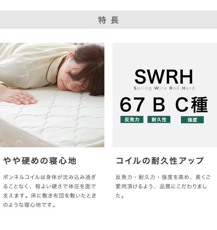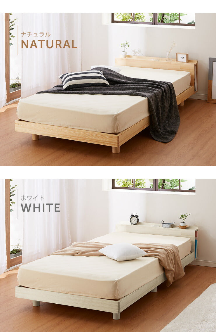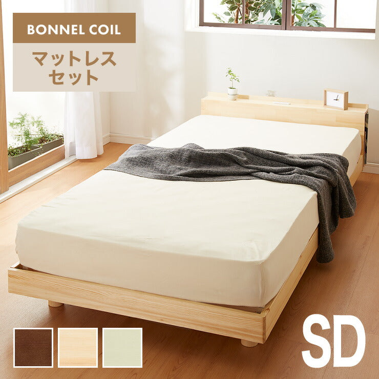 マットレスセット セミダブル 宮付き・コンセント付き すのこベッド ボンネルコイルマットレス ベッドセット(代引不可)