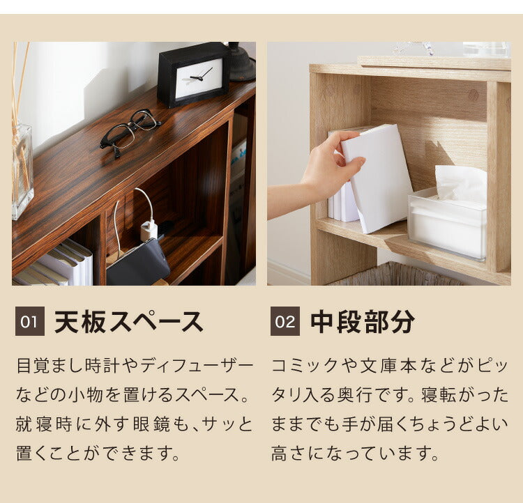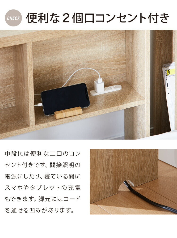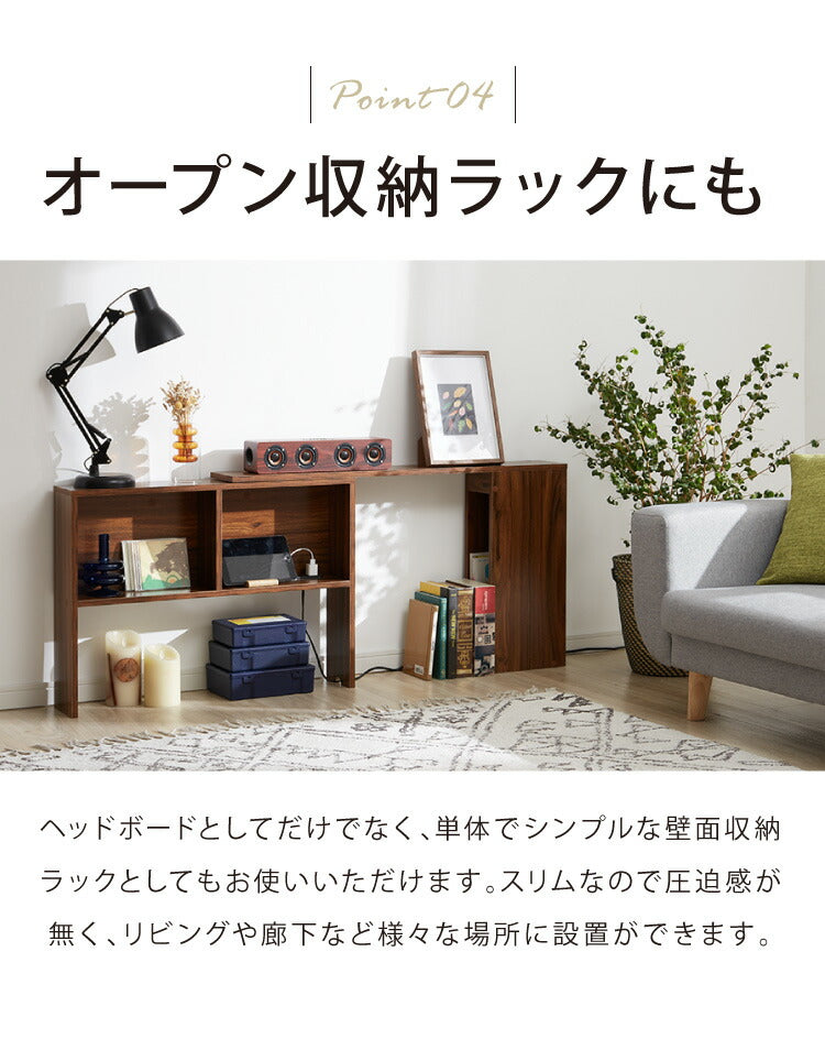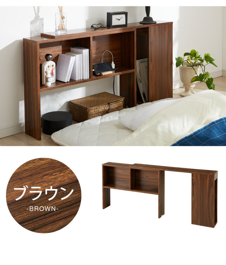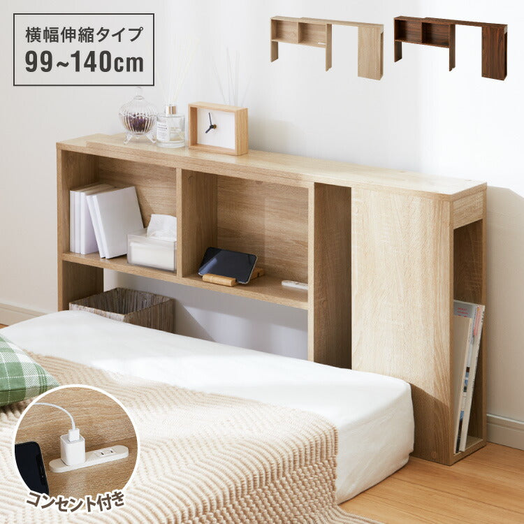 コンセント付き 伸縮式ヘッドボード 幅99~140cm シングルからダブルまで対応 奥行き15cm ヘッドボード ベッド収納 収納家具 本棚 ラック 伸縮タイプ