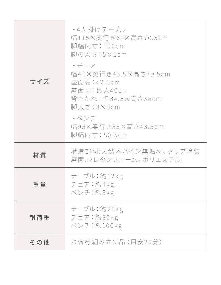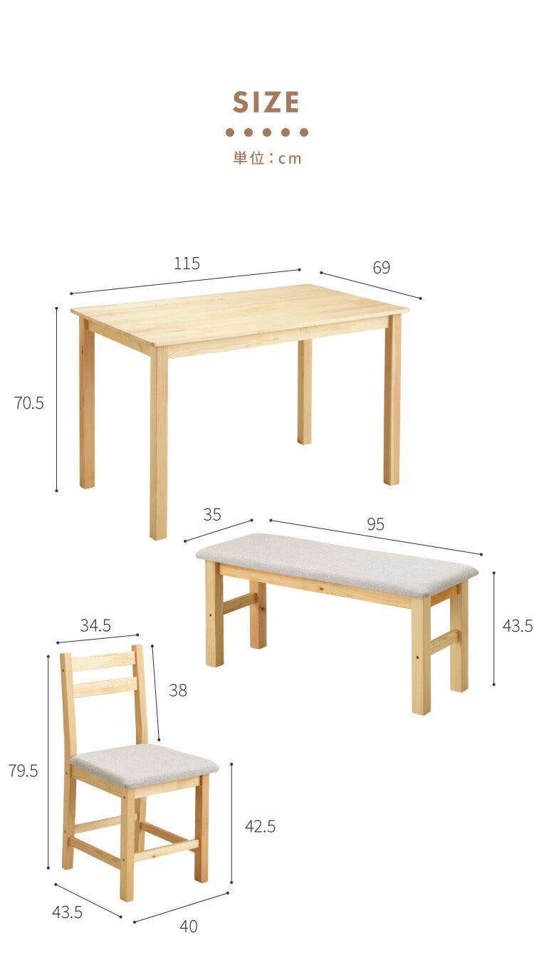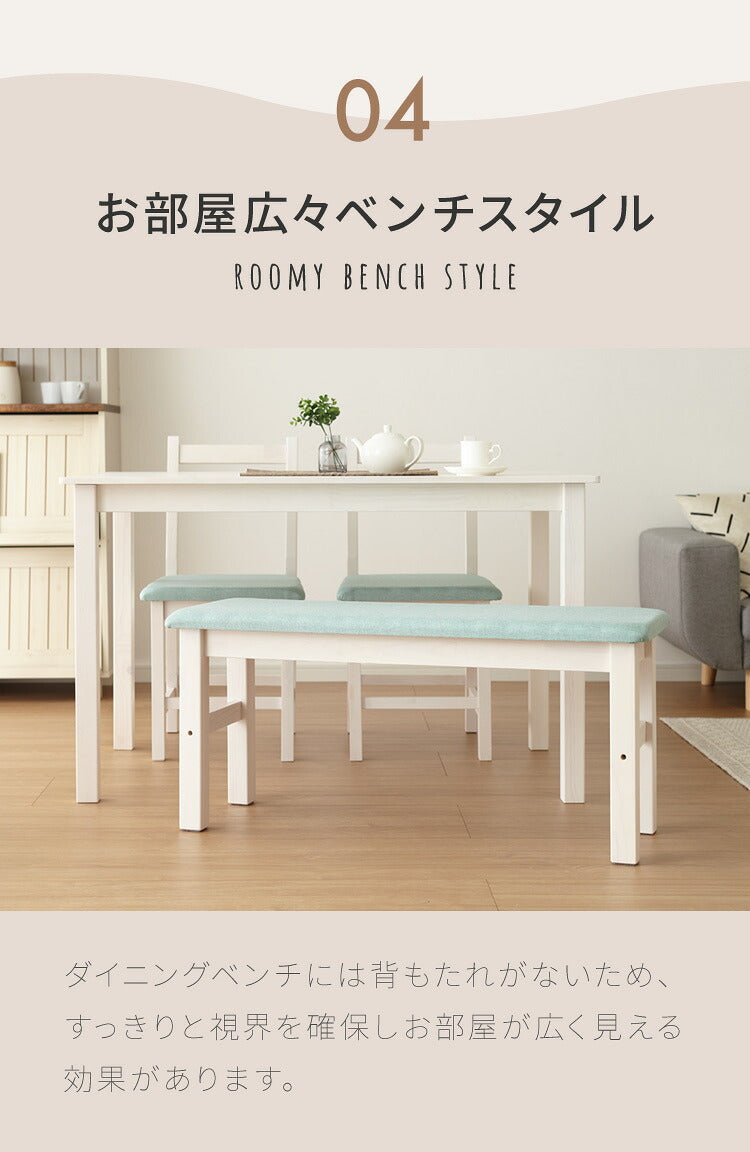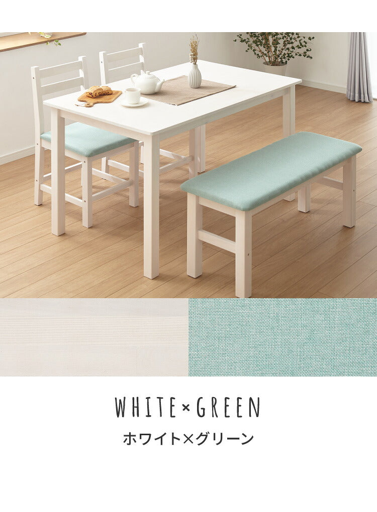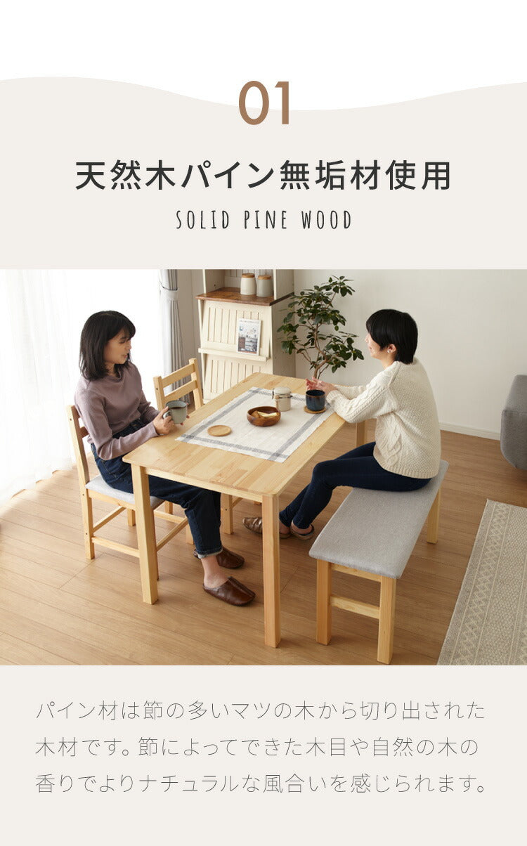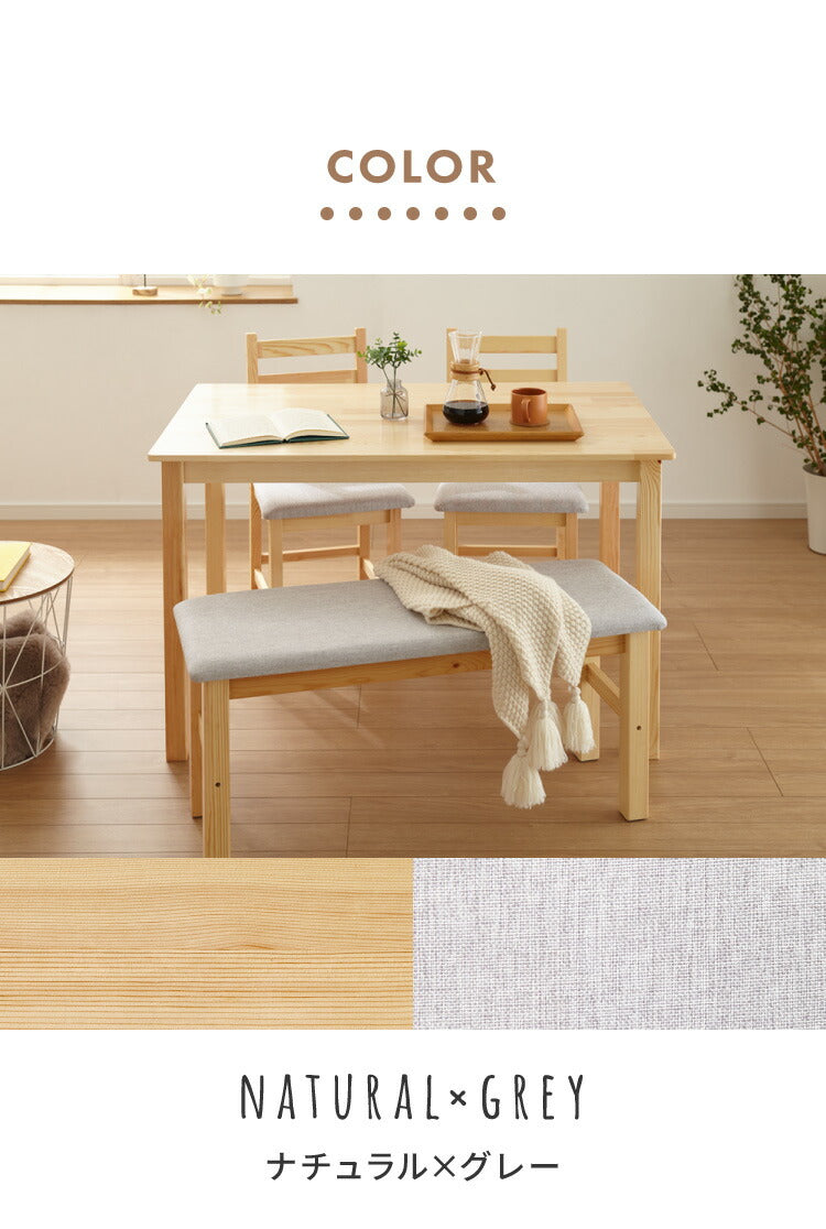 ダイニングテーブルセット、4人掛け、ベンチ、4点セット、天然木、パイン材、4人用、コンパクト、幅115cm、おしゃれ、北欧、カフェ、ナチュラル、ダイニングセット、ダイニング、ダイニングテーブル4点セット、ダイニング4点セット、リビング