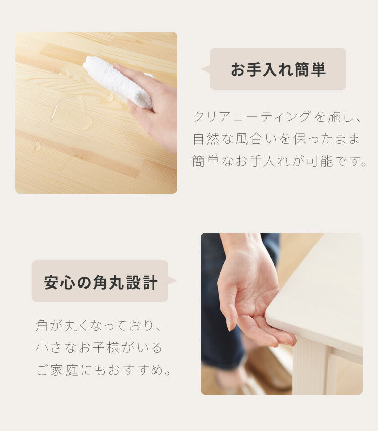 ・パイン材無垢材を使用。商品からあたたかみを与えます。