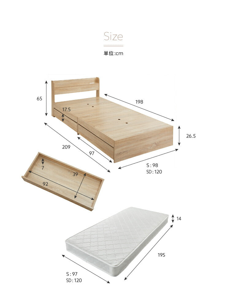 マットレスセット シングル コンセント付き 収納ベッド ボンネルコイルマットレス ベッドセット 圧縮ロールマットレス(代引不可)