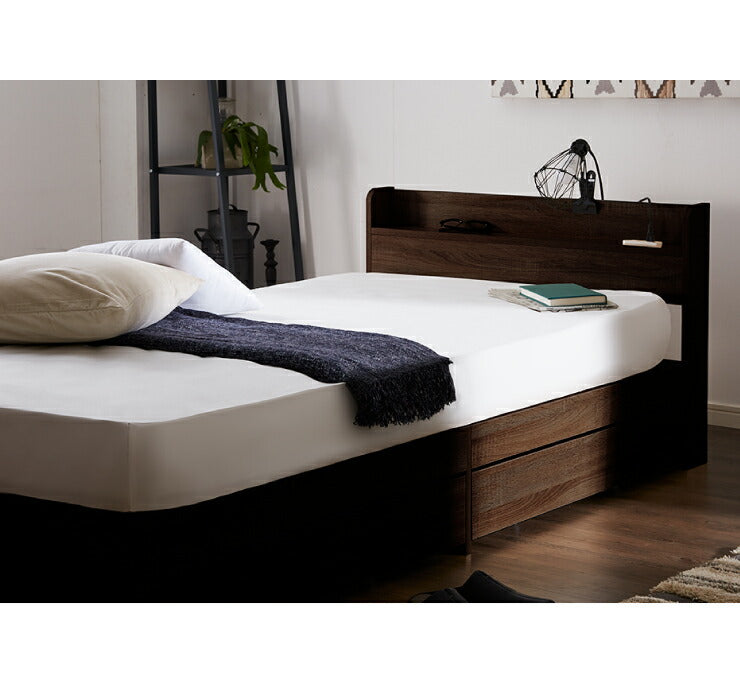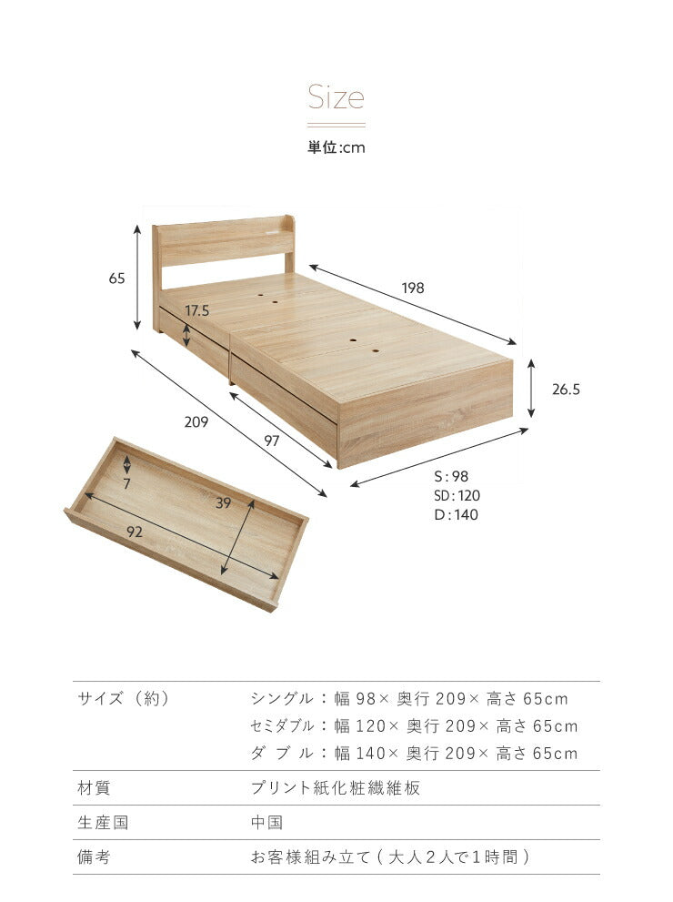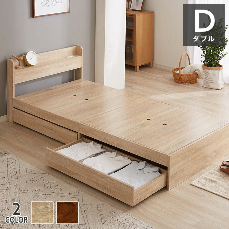 棚・コンセント付き 収納ベッド ダブル フレームのみ 宮付き 引出し付き 収納 コンセント2口 北欧 シンプル 新生活 一人暮らし ベッド ベッドフレーム 宮棚 引き出し SNBD-TC-001D (代引不可)