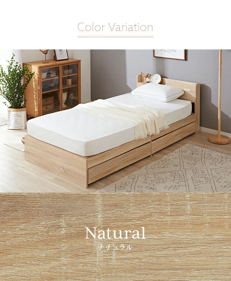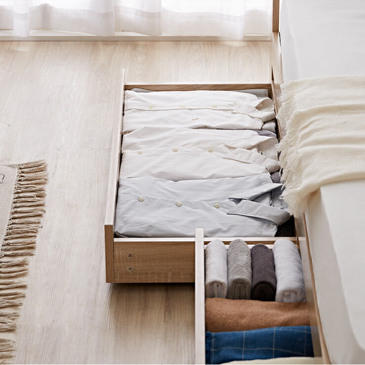 ・2つの引出に宮棚がついた収納しやすいベッドです