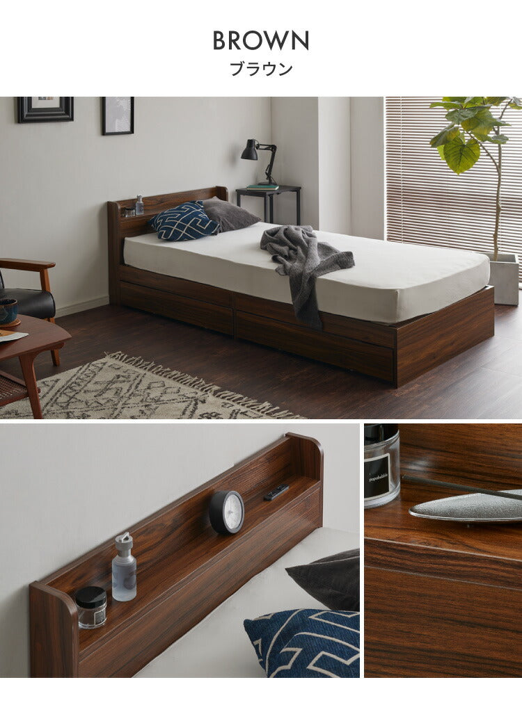ベッド シングル 収納付き ベッドフレーム 単品 すのこ コンセント付き 引き出し付き ヘッドボード すのこベッド 収納ベッド 宮棚 宮付き フロアベッド ローベッド ロータイプ