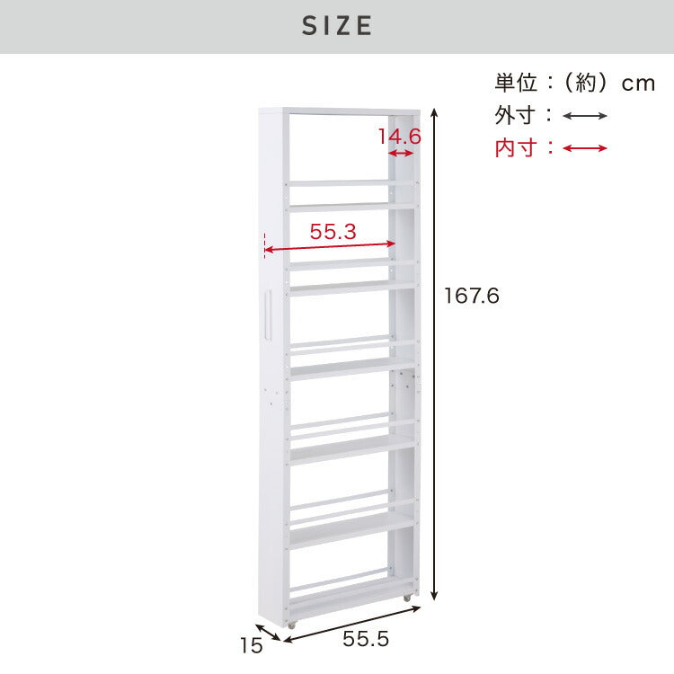 キャスター付き スチール製すき間収納 ハイタイプ 幅15cm